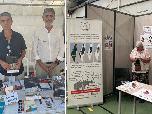 Dans les 2 cas, une belle journée de rencontres : de nombreuses personnes intéressées par la Palestine, des échanges intéressants sur l’actualité et nos activités, de nouveaux contacts …