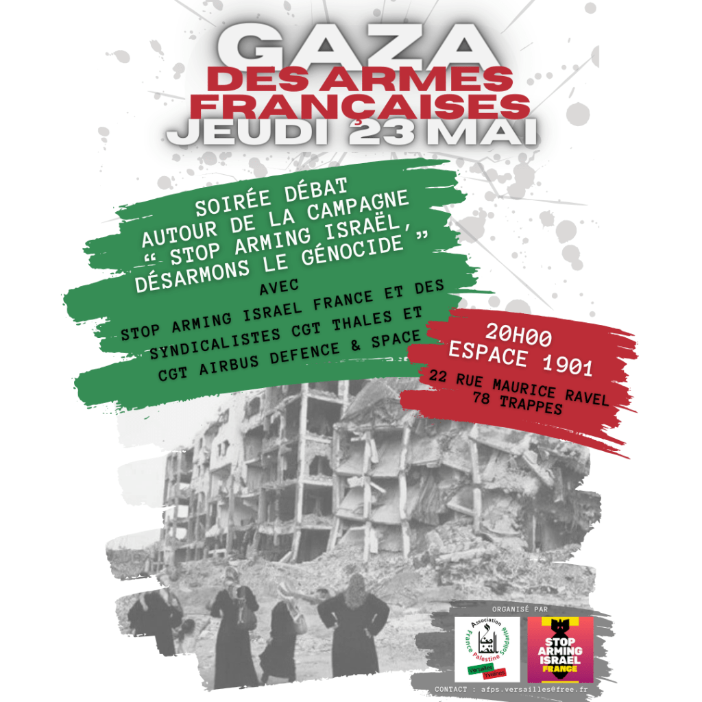 Pour débattre de la campagne lancée par le collectif Stop Arming Israël France, nous vous proposons une soirée à Trappes.