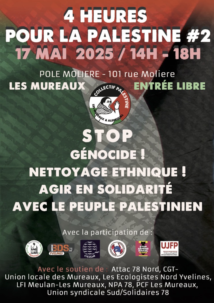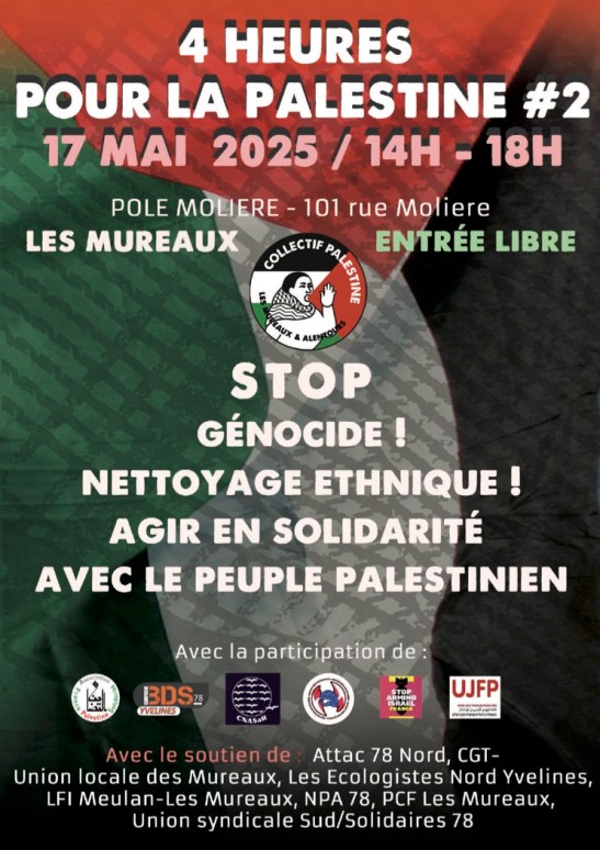 17 mai, 4 heures pour la Palestine aux Mureaux
